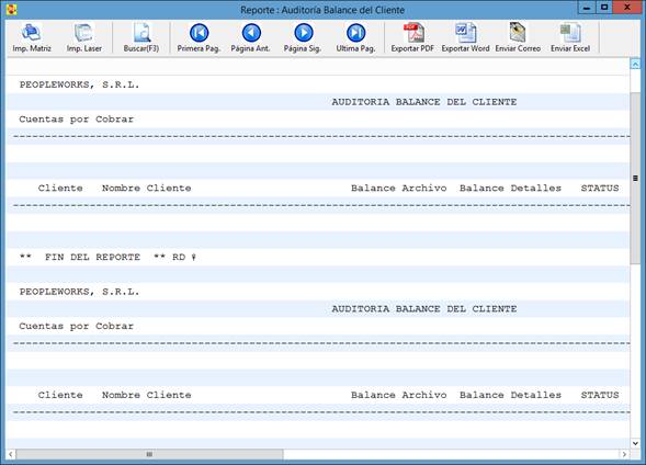 A continuación se muestra la pantalla que nos sale al darle clic a auditoria balance cliente.