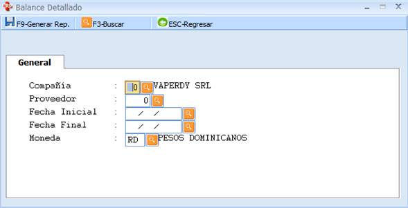 Para obtener este reporte, el usuario debe llenar los datos requeridos en los campos de esta pantalla.
