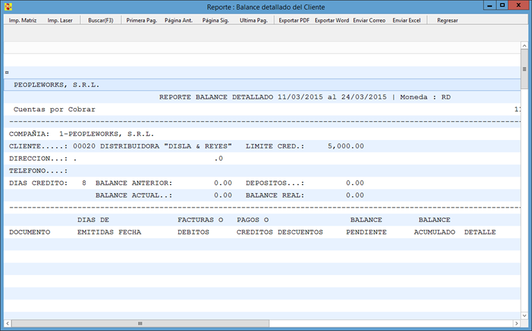 Esta es la forma de cómo se presenta el reporte en cuanto a su estructura, la información de los clientes será aquella de acuerdo a las especificaciones dadas anteriormente.