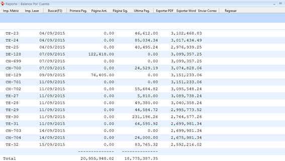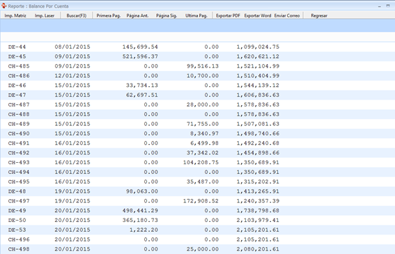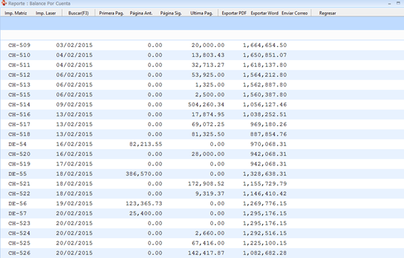 Luego pulsamos F9 o general reporte y nos presenta un balance completo de todas las transacciones realizadas hasta la fecha.