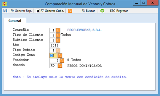 Comparación mensual de ventas y cobros