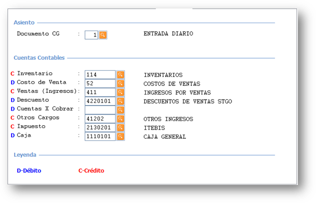 • Hay que poner las cuentas que se consideren del catálogo aquí, tanto para los documentos de facturas de crédito como de contado.