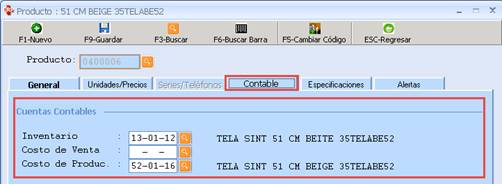 Cada vez que se crea el producto deben especificarse las cuentas contables del mismo, en el caso de que este use cuentas particulares y no las de los documentos de inventario y facturación.