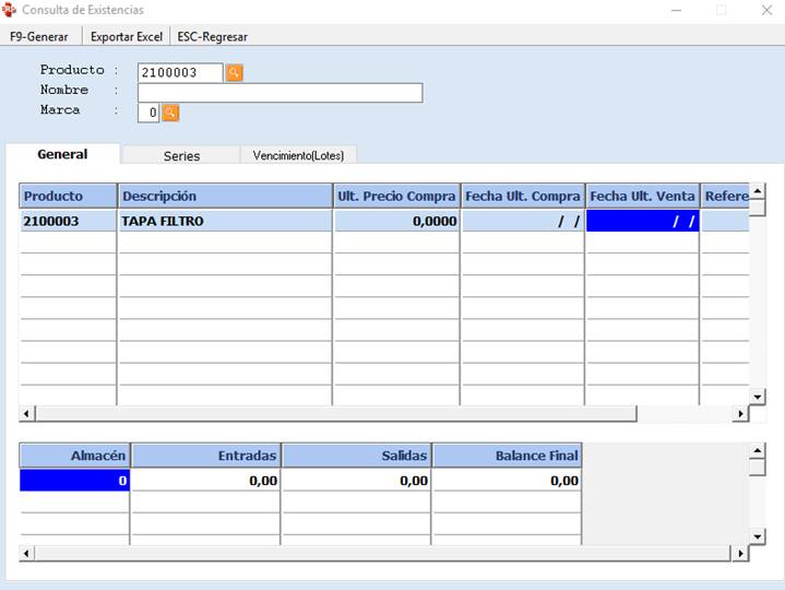 Sirve para consultar la existencia de los productos, se selecciona el producto.