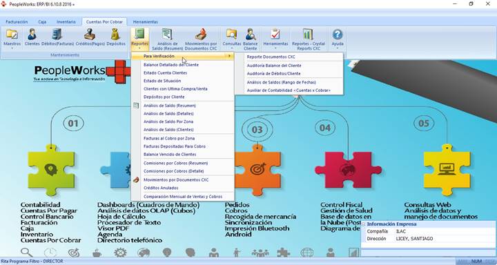 Se arna los reportes detalla de todo lo que tiene que ver cuentas por pagar por cobros, estados de cuentas, entre otros.