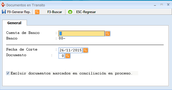 Luego de pulsar documentos en tránsito se genera esta ventana: