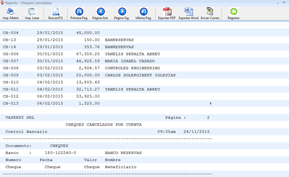 Si dejo marcada la casilla y pulso F9 o general reporte en la barra fe herramienta, genera el reporte siguiente