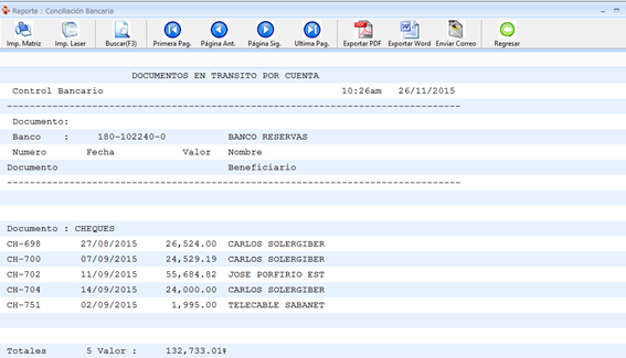 Y genera el reporte con todas las transacciones realizadas y que están en tránsito: