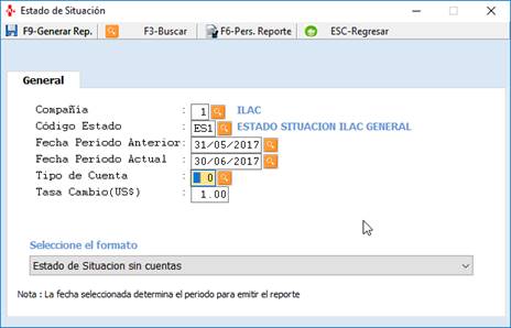 • Código Estado: Seleccionar entre los estados financieros diseñados el que desea imprimir.