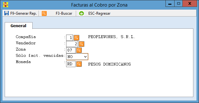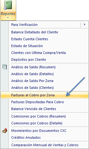 > Facturas al cobro por zona