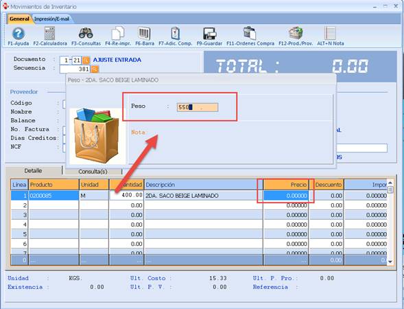 Cuando se va a ingresar la producción al inventario, en estos productos debe solicitar el peso y debe permitir que estos se guarden sin costo.