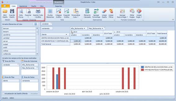 Área de diseño: Nos permite visualizar los datos estructurados de manera que nos facilite su interpretación. Ésta a su vez está hecha con dos áreas, la de pivote y la de gráfico.