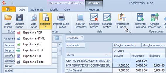 La función exportar solo aplica al área de datos y se puede realizar utilizando la opción de menú, como muestra la figura siguiente: