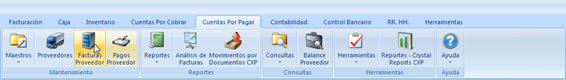 Los suplidores están en cuentas por pagar se llaman proveedores como se puede ver en la siguiente imagen se puede ver el icono donde esta proveedora para ingresar en él. Esta pantalla tiene las funciones básicas de las otras pantallas: