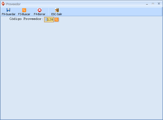 Luego de ingresar en la pantalla de proveedor se verá la siguiente ventana Esta pantalla tiene las funciones básicas de las otras pantallas: