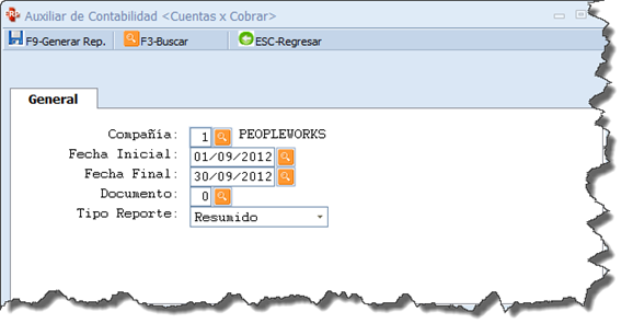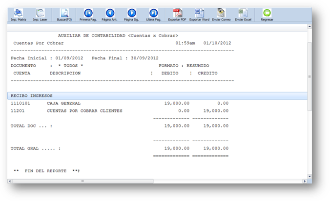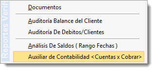 > Reporte auxiliar de contabilidad en el módulo de Cuentas x Cobrar