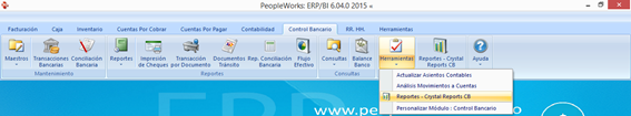 Para cada módulo hay una carpeta diferente, en este caso trabajamos con control bancario, como se muestra en la parte superior.
