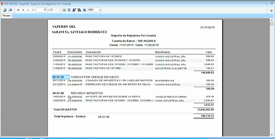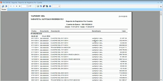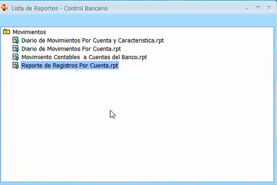 Elegimos esta carpeta de (Reporte de registros por cuenta.rpt), y nos muestra esta pantalla:
