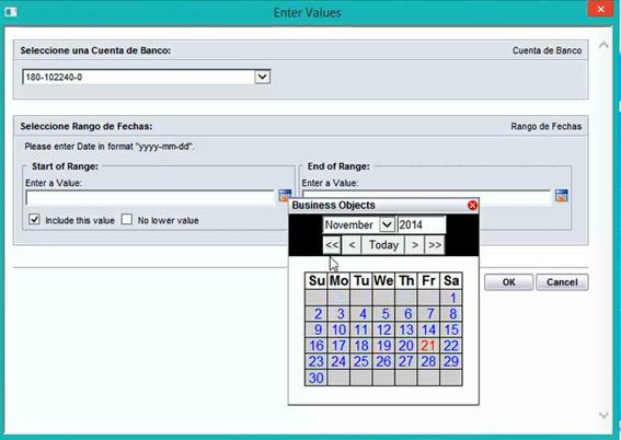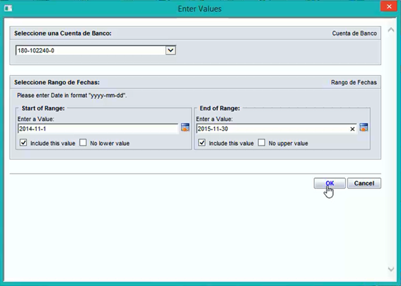 La fecha inicial y final, de acuerdo al orden en que trabajamos.
