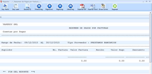 Con este reporte el usuario manejará los datos en relación de la contabilidad de manera indirecta, por así decirlo, pues podrá tener un informe de los pagos ya realizados por compañía.