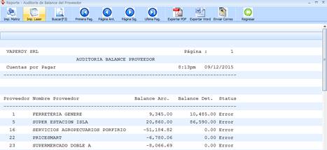 Con los reportes de verificación el usuario podrá hacer reclamaciones por alguna inconformidad por parte de algún proveedor, mediante el reporte de Auditoría de Balance del Proveedor. Este reporte es una verificación que se hace, si un proveedor no se siente satisfecho con el balance, según las transacciones realizadas. El mismo permite la corrección, en caso que hubiese una inconformidad, al mismo tiempo que lo visualiza.